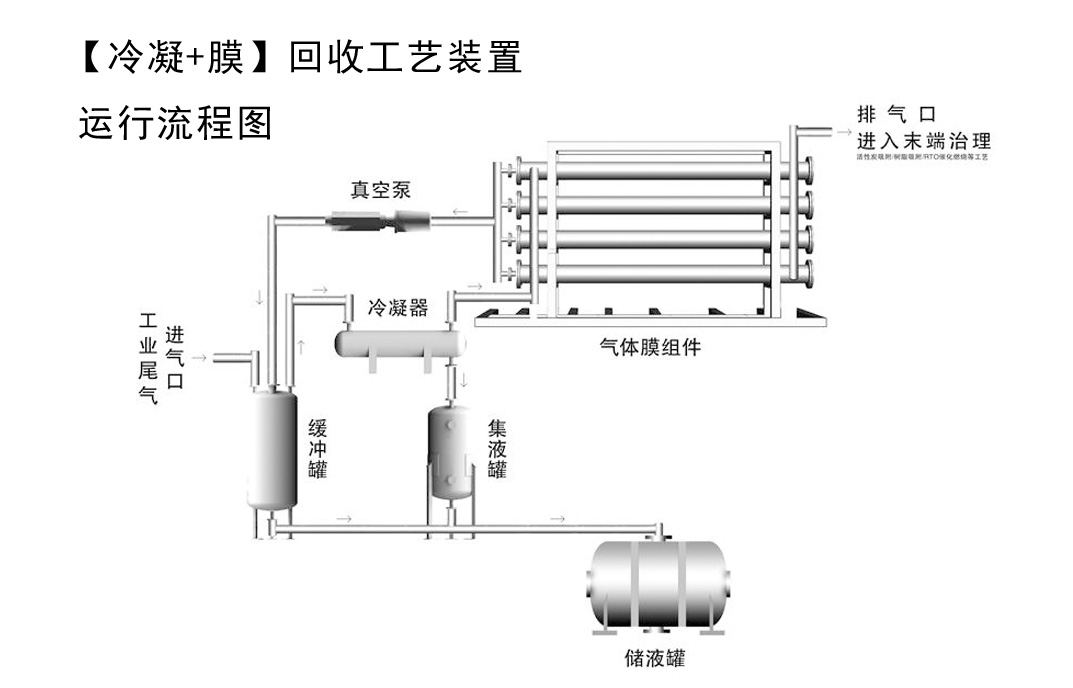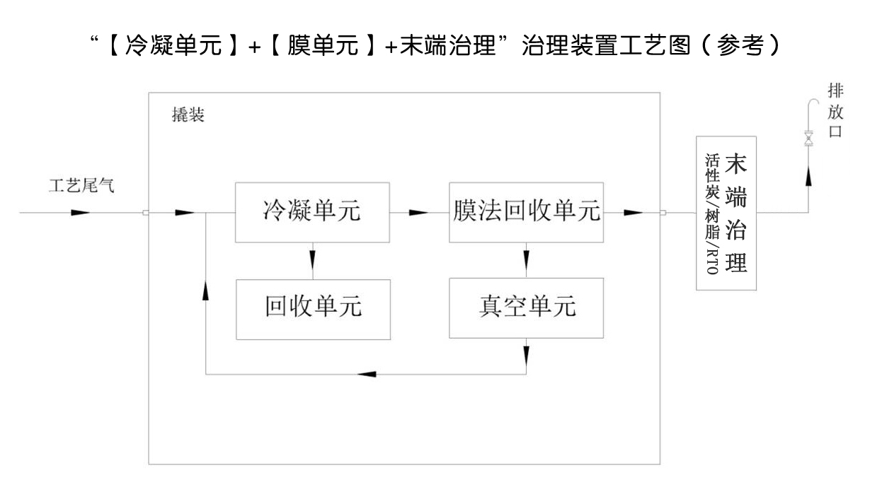 工艺:【冷凝单元】+【膜单元】+末端治理(活性炭/树脂/RTO等)